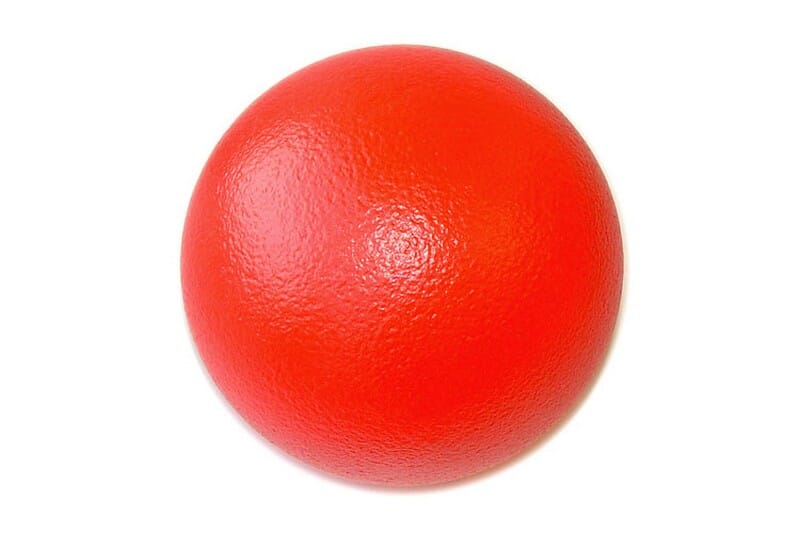 Lett og myk fotball av skumgummi, med elastisk lakkbelegg utenpå.
